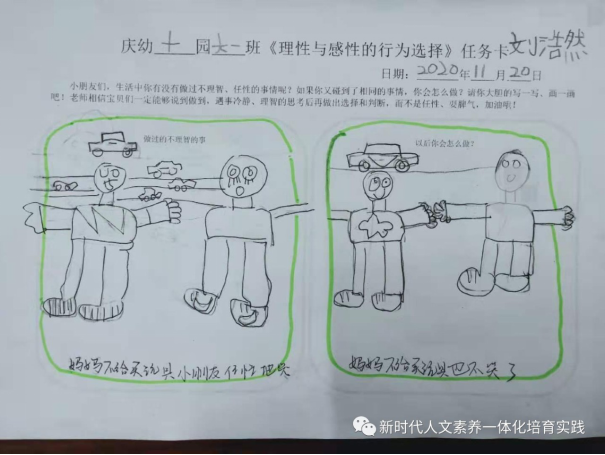 当孩子们看到星星能够“想一想,觉得爸爸说的是对的,便不再要玩具”时说:“星星遇到问题知道想一想,再决定怎么办”“爸爸看到星星这么懂事,多开心啊!”“星星虽然很想要,但克制了自己”。透过这些稚嫩却深刻的表达,我知道孩子们真正理解了“冷静”和“任性”的含义。赛德兹博士说: “人如同塑造陶瓷一样,小时候就形塑一生的雏形。儿童头脑宛如一张白纸, 在这张洁白的纸上绘出的一点一线,都是构成整个图案的基础。”所以我们必须在幼儿时期采取正面教育的方式,教会孩子学习控制与生俱来的任性行为,遇到事情冷静思考之后再做出决定,帮助孩子提高自我控制能力和分辨是非的能力。