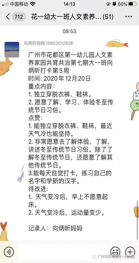 家长根据教师推送的指导方案,积极观察幼儿并反馈