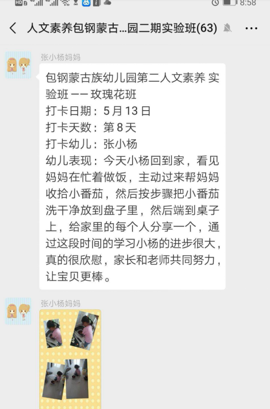 在人文素养的滋养下,孩子们天天有变化、日日有惊喜。家长们有感而发:“没有教育不好的孩子,只有坚持不好的家长……”在家长的配合下,园所的重视下,使二期人文素养家园共育共治无缝对接,家园共育共治参与率达到100%,有效的促进了家园共育共治的实施。