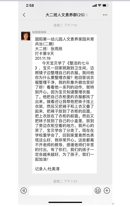 通过人文教育,我的孩子会慢慢学会建立良好的生活习惯以及学习习惯,学会了主动地去思考,去改正。感谢老师们的辛苦付出,作为家长我会全力配合各项工作,达到共育共治的良好效果,促进孩子全面发展。
