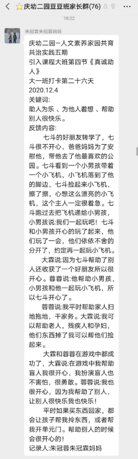 幼儿园是人文素养培育的积极倡导者和实施者,家庭才是人文素养培育的主阵地!幼儿园会在每天的课程结束后,结合课程核心人文元素和具体活动内容,给予家长具体可行的家庭指导建议,带动家庭提升人文家教能力,助力幼儿人文素养培育。快看看孩子们的课后任务卡及家长的真实反馈吧!