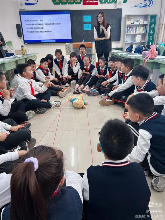 课堂互动环节“一张密密的网”,使学生们的心情由刚开始的激动、好奇到最后的沉重:每个孩子都清晰的认识到不自律对自己和他人的危害都是巨大的。
