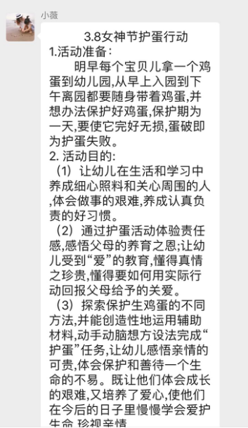 今年的“三.八”妇女节,赵梓赫小朋友过的特别有意义,因为他有了自己的“小宝宝”——鸡蛋小诺诺。这是红果果班老师组织孩子们体验的为期一天的“护蛋行动”,早上孩子带着画着笑脸的“小诺诺”高高兴兴地去幼儿园了,通过老师的照片,我看到这一天他过得可真是小心翼翼,放学时护蛋成功的他,扑倒了我的怀里说:“当妈妈太不容易了,妈妈我在你肚里里的时候,你也这么小心的保护我吗?”看着孩子稚嫩的小脸,我突然觉得当妈妈真的是世界上最幸福的事情。